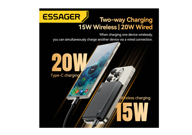 ESSAGER 20W Wireless Power Bank, Grey- SY0G, 1 Year Warranty | EDY1W-SY0G-Z