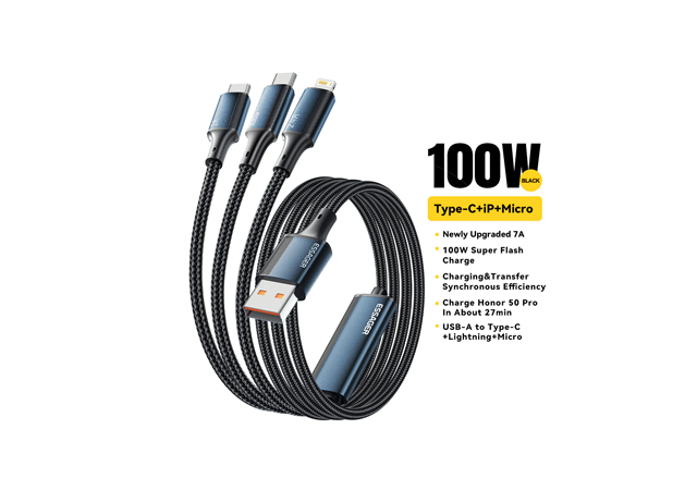 ESSAGER 3 IN 1 100W 7A Braided Cable 1.2M Black |