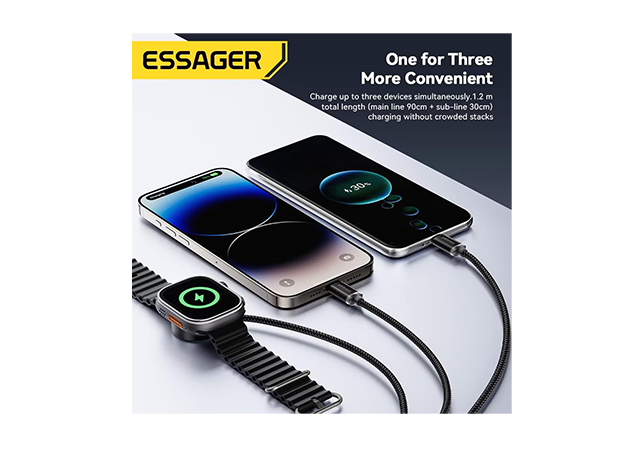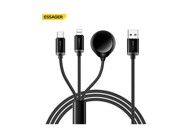 ESSAGER USB-A to Type-C + Lightning + Watch Charging Cable 1.2M Black |